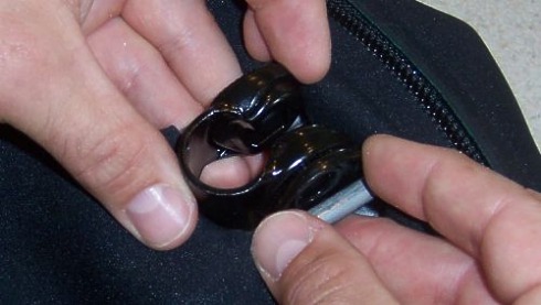 Insert or check to make sure the (black or silver) round post adaptor